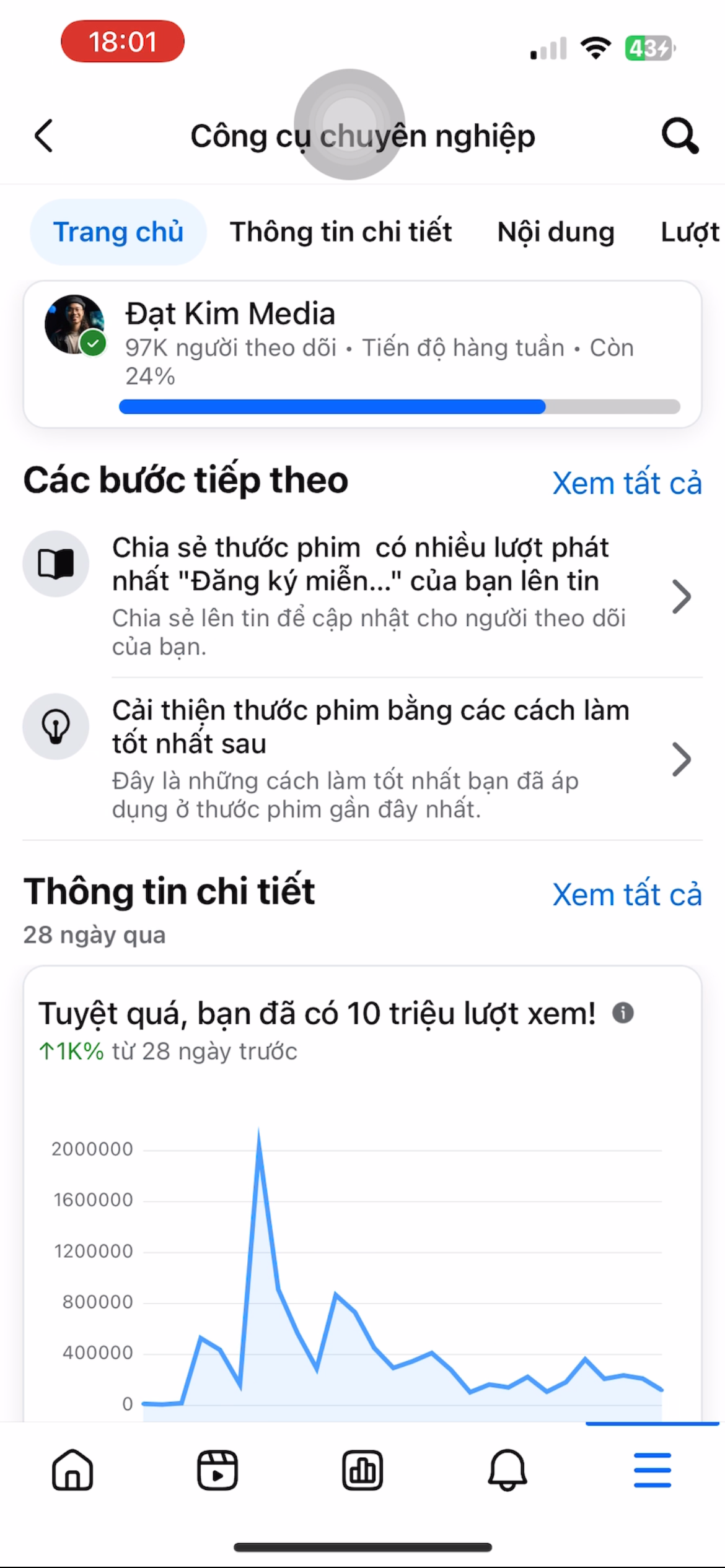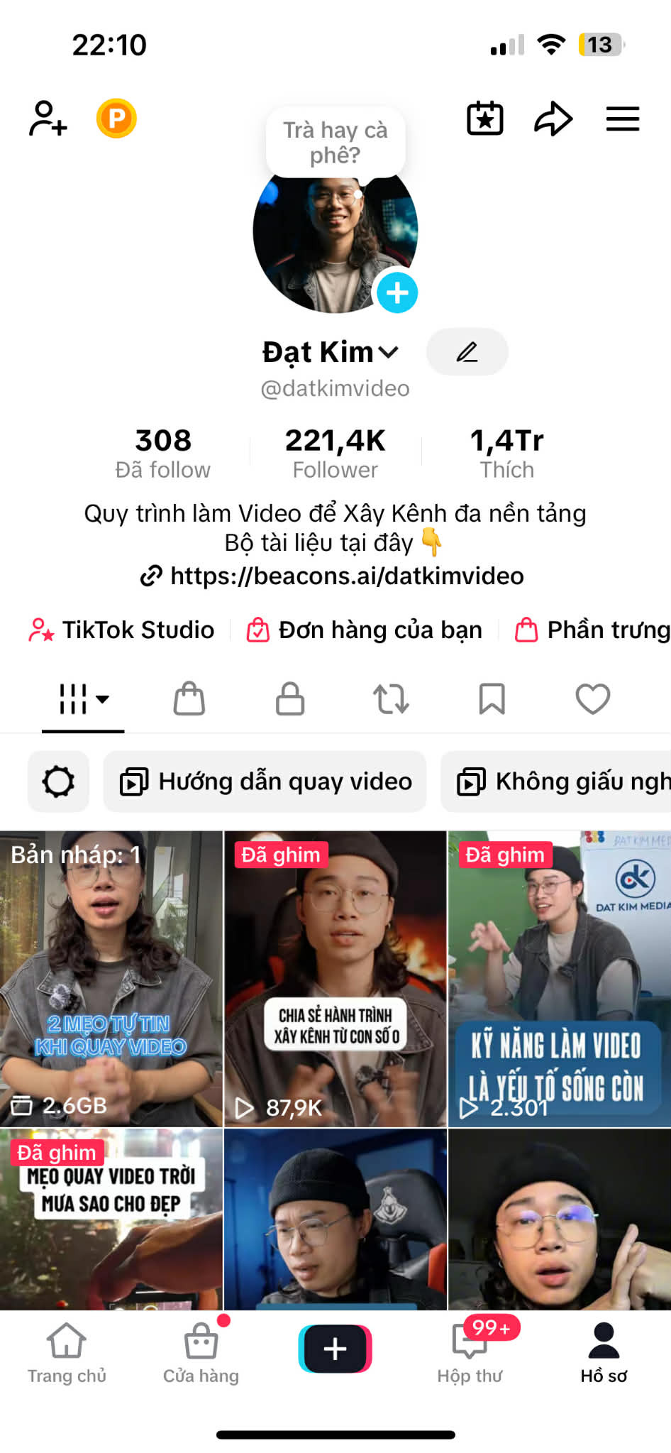 Sau đó Đạt áp dụng công thức DK SYSTEM sang Facebook và kết quả: TikTok & Facebook đạt hơn 400.000 người theo dõi chỉ trong 1 năm, tiếp cận hàng trăm triệu lượt xem và mỗi tháng có hàng trăm lượt khách hàng quan tâm dịch vụ. Tất cả vận hành chỉ với 1 người. Đó là Đạt đây Và đó là lý do DK SYSTEM ra đời DK SYSTEM không bắt bạn phải giỏi công nghệ. Không bắt bạn phải "tự nghĩ" mỗi ngày.Không bắt bạn phải có thiết bị xịn hay lộ mặt