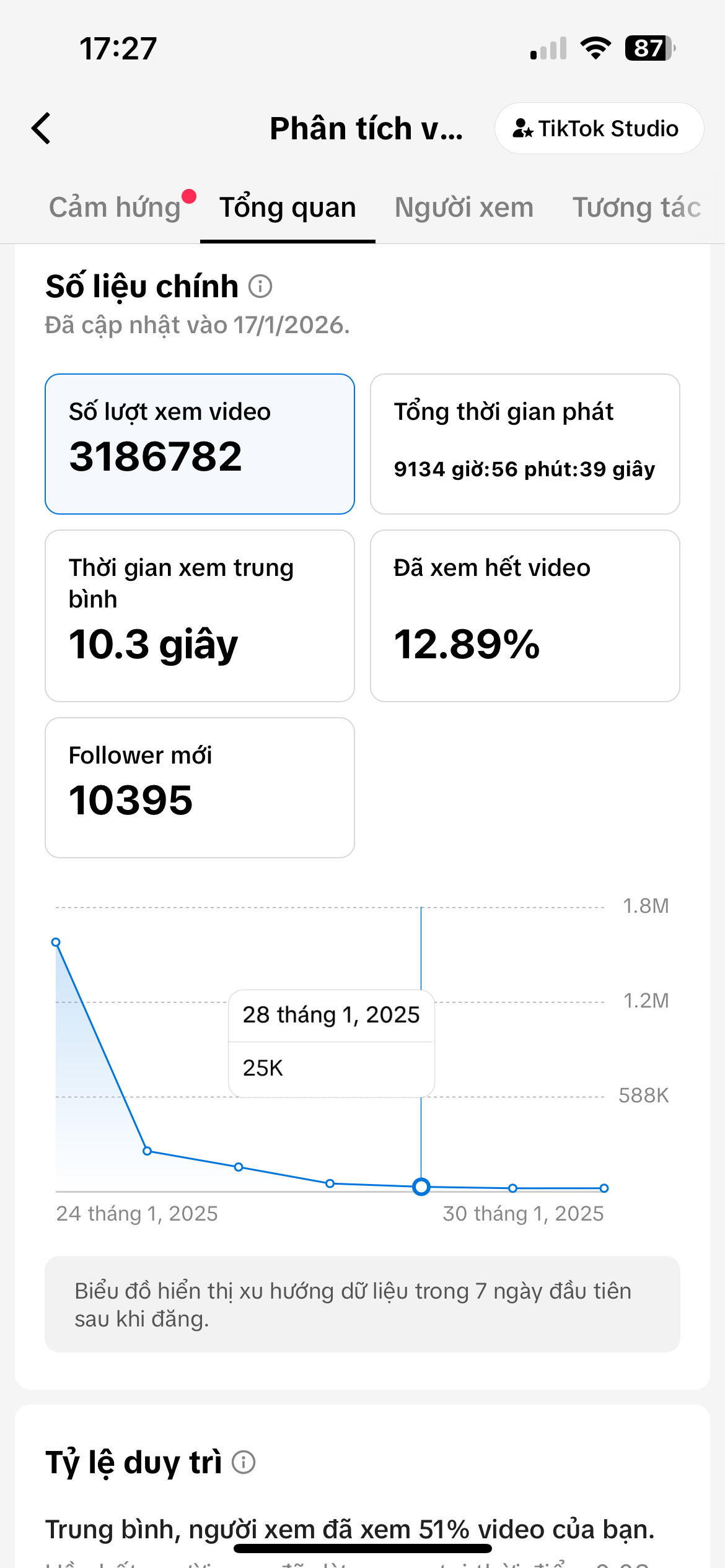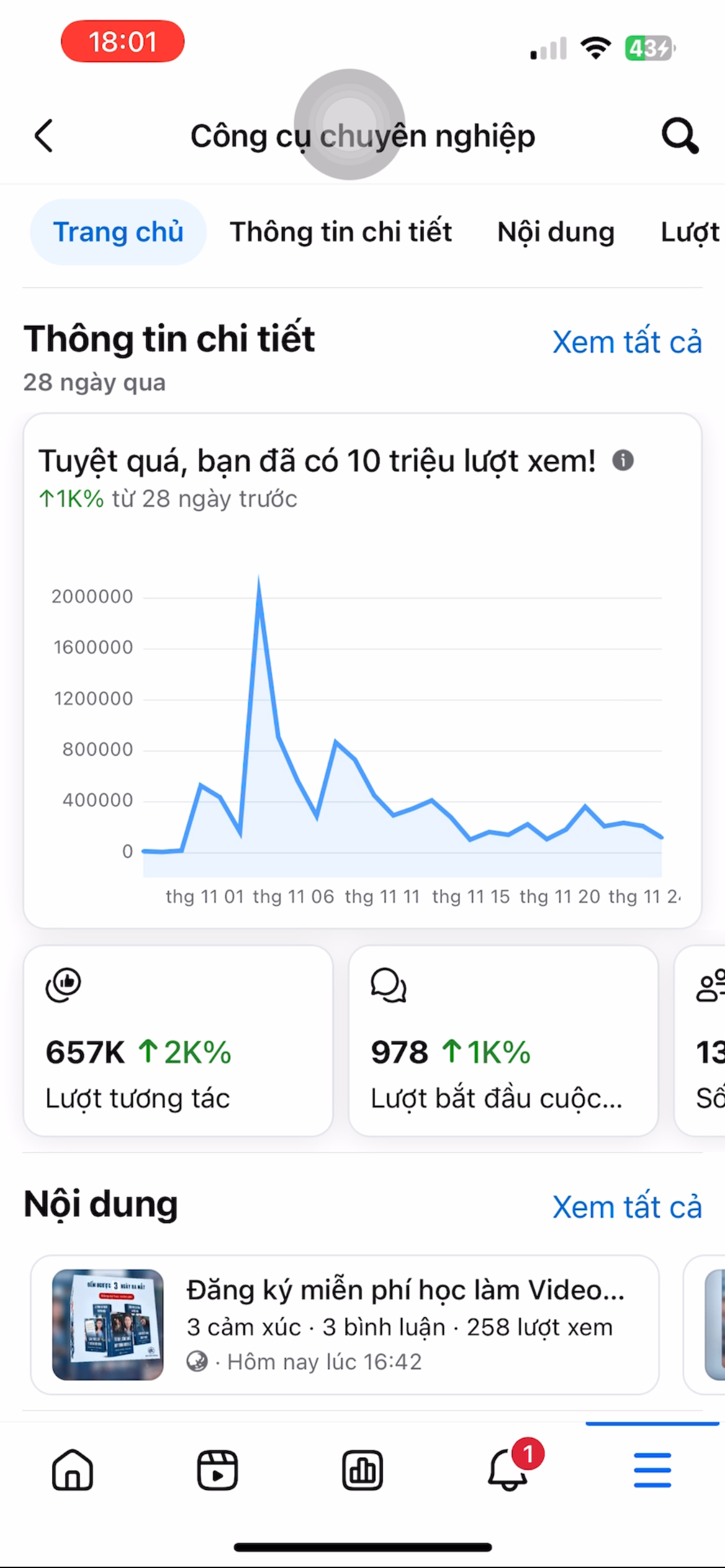 - Đạt 1 triệu view sau 3 ngày xây lại kênh TikTok